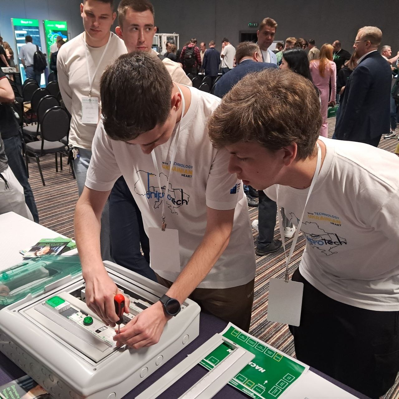 Данило Кобченко, Андрій Чуб та Микита Глущик – студенти 141 спеціальності – працювали з реальними кейсами на базі обладнання Schneider Electric. Дванадцять інтерактивних стендів, складні задачі з автоматизації, 150 учасників з усієї країни. Наші хлопці показали те, що вміють найкраще: технічну майстерність, креативність та вміння працювати в команді.