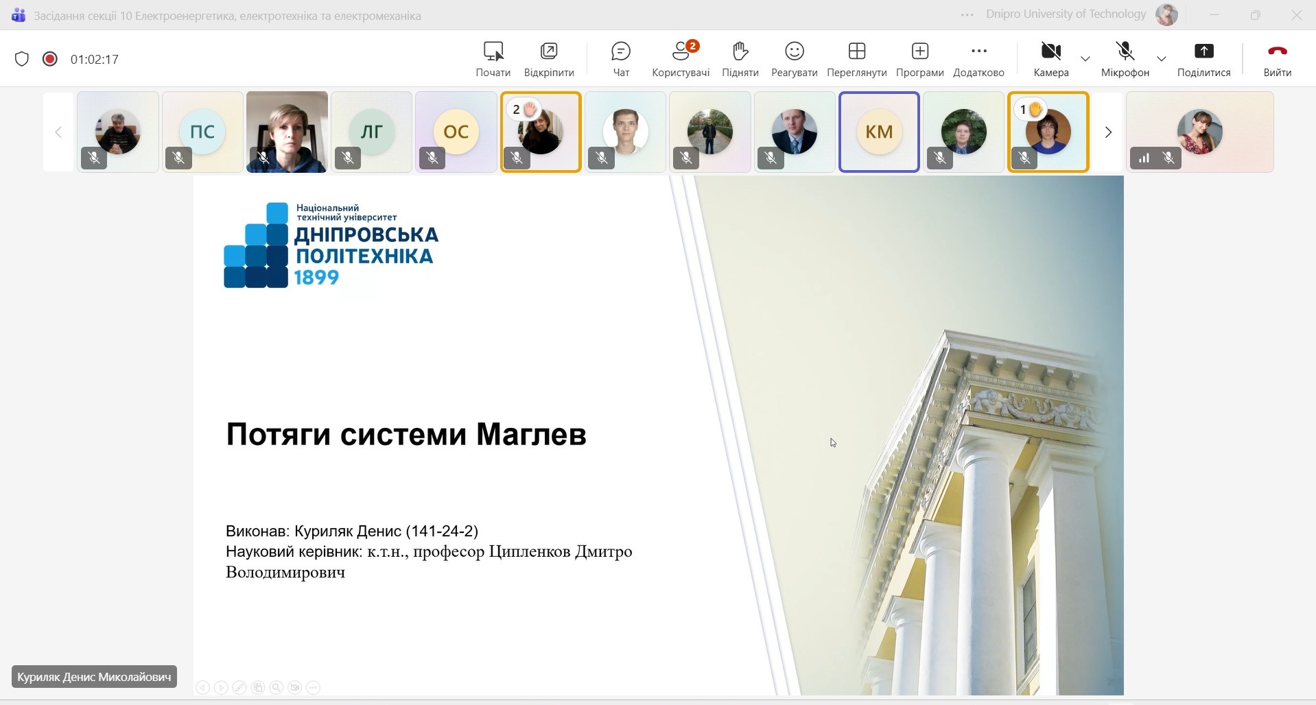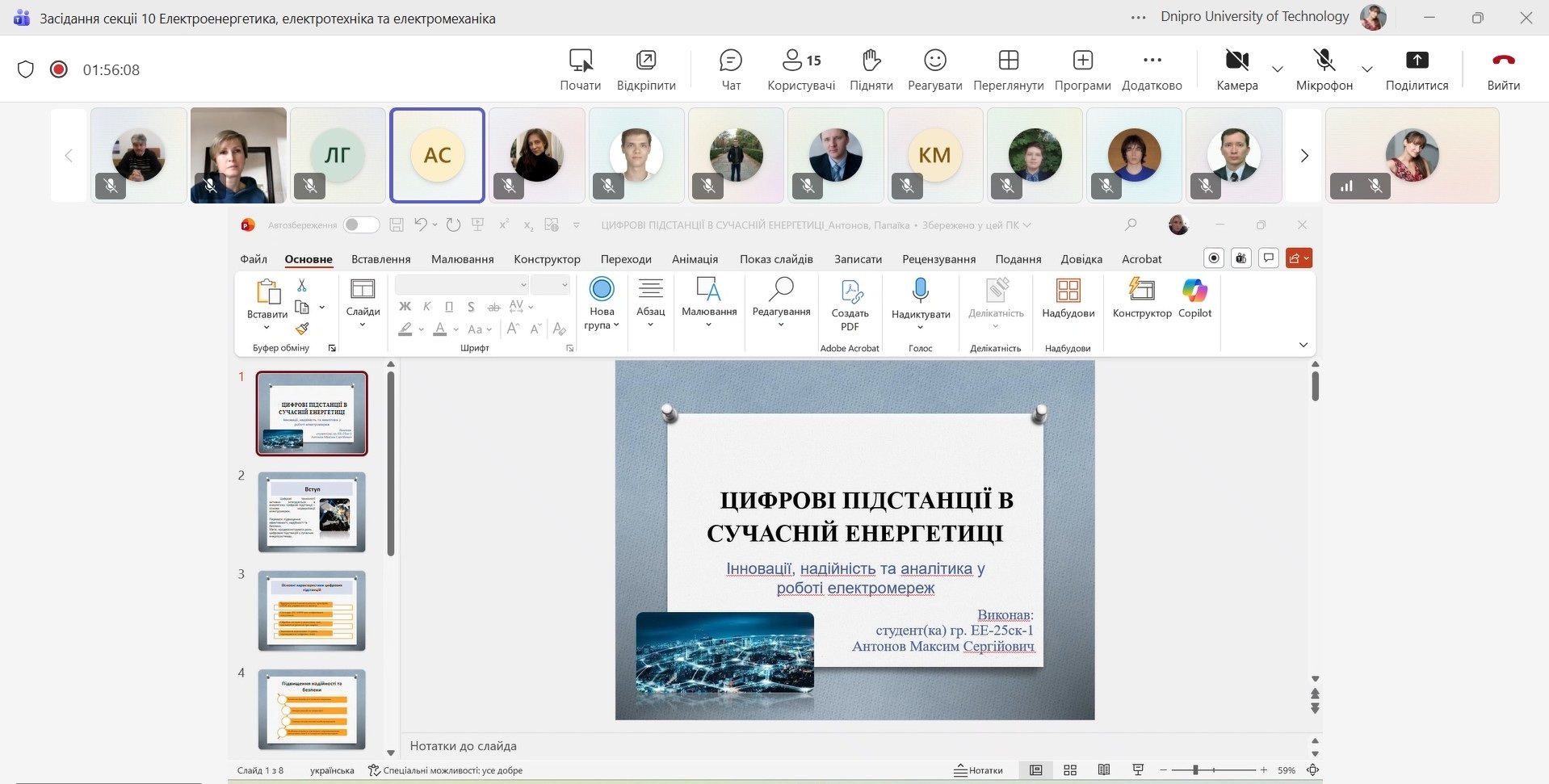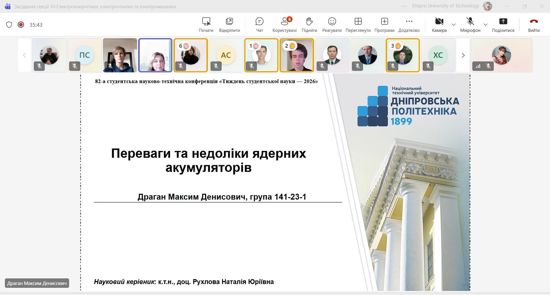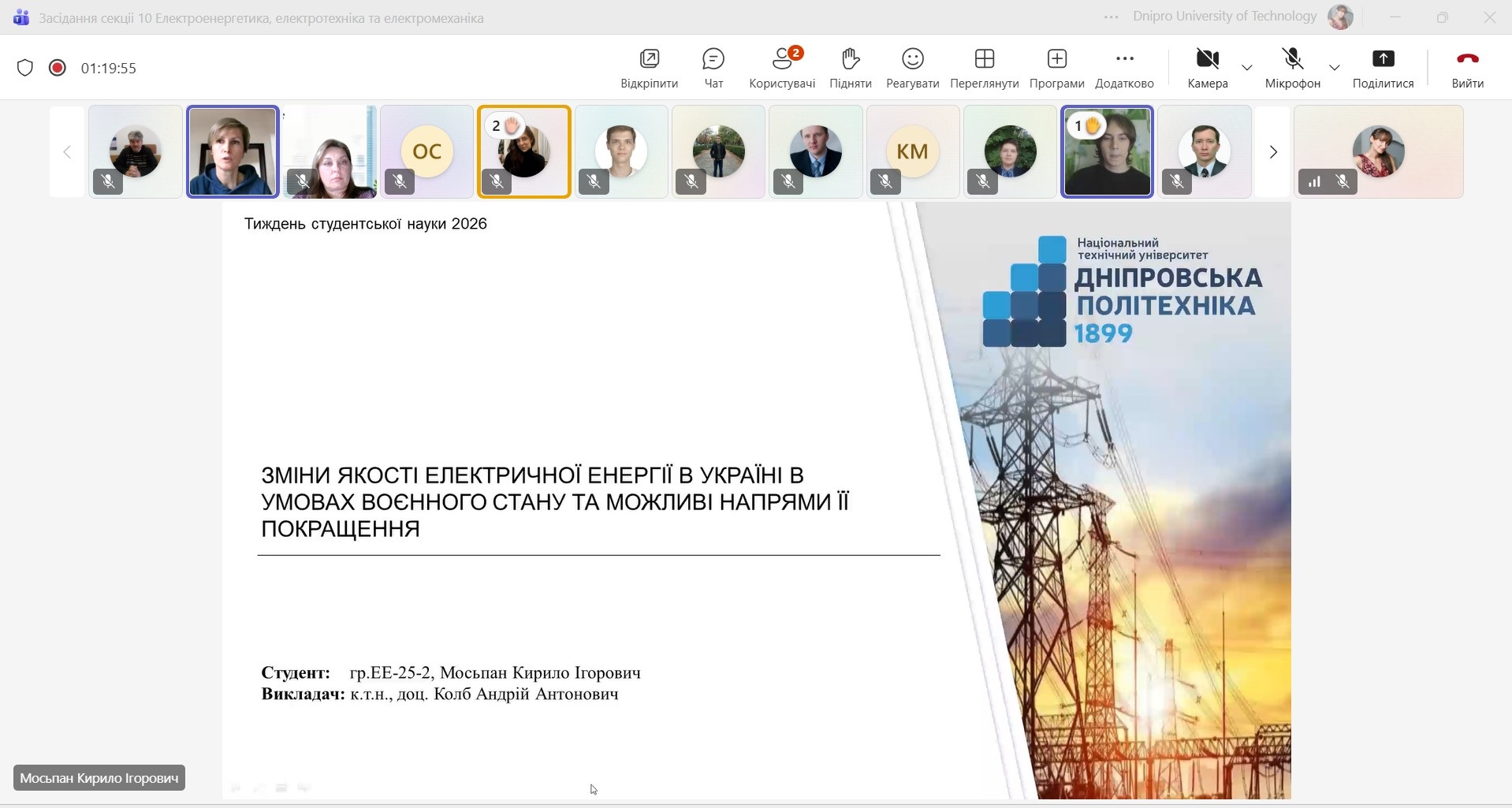 25 квітня 2025 р. в рамках студентської наукової конференції "Тиждень студентської науки в НТУ "Дніпровська політехніка" - Dnipro University of Technology відбулося засідання секції 10 «Електроенергетика, електротехніка та електромеханіка».