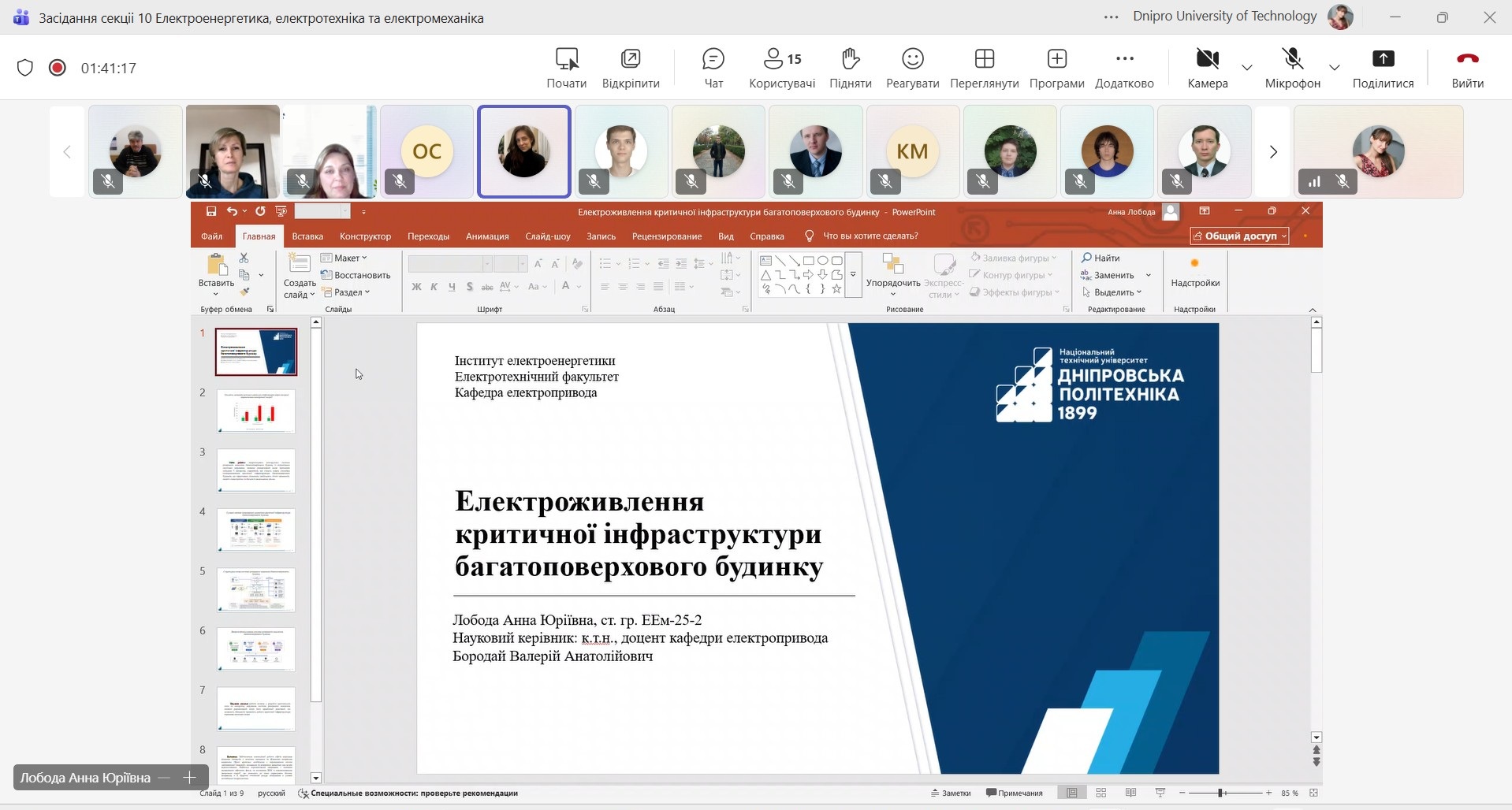 Актуальні та змістовні доповіді представили здобувачі першого (бакалаврського) та другого (магістерського) рівнів, які навчаються в НТУ «Дніпровська політехніка» за спеціальністю G3 "Електрична інженерія".